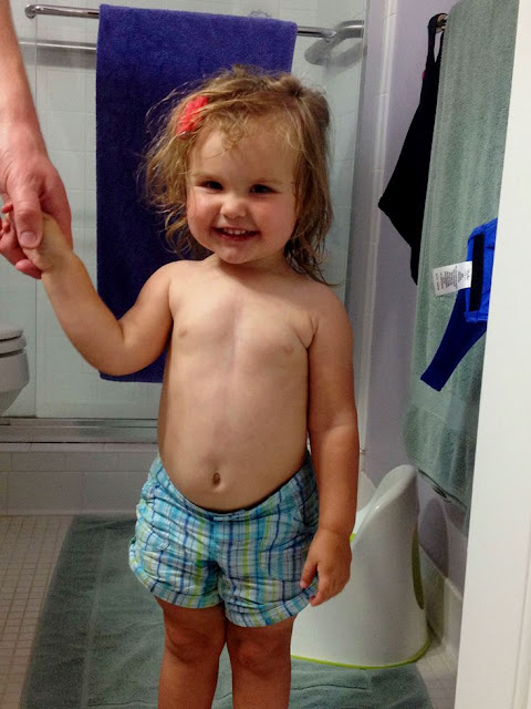 Then later in the weekend, she wanted to eat a popsicle herself. I don't think this picture adequately does her justice. Her entire mouth was purple, her clothes were sticky, and when we took them off, she had a purple stain running from her chin down her stomach to her diaper. It was quite gross.