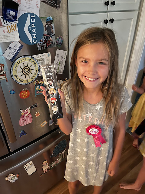 Then we just had a normal slow day while we prepped for her party...however, teacher assignments came in the mail! She and two other girls at her party all got the same teacher which was quite exciting for them. Chris had organized a biking scavenger hunt around the neighborhood. He handed over the first clue and they were off!