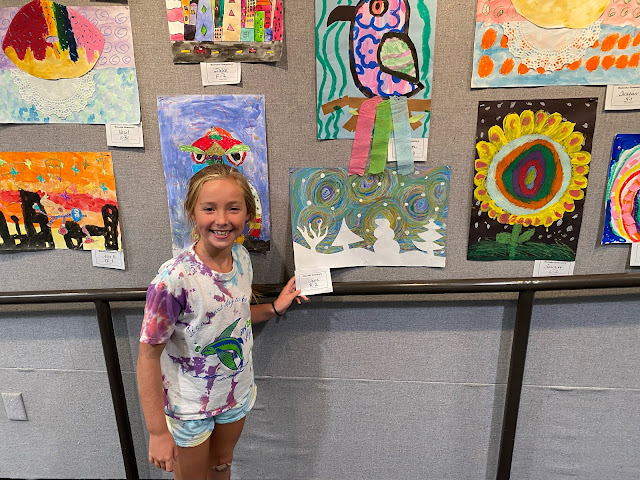 Jane discovered that some of her second-grade art work was being displayed at the library!