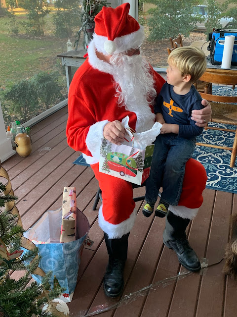 Eleanor and Jane's swim coach had offered to watch the kids overnight so we dropped them off on our way up to Richmond - the first time Chris and I have both had the night off simultaneously since pre-twin days. It was glorious. AND, Santa visited! Which was very, very exciting. They also got to decorate cookies, ride a lawn mower, watch a movie outside, and eat special pancakes. They had such a good time, they've been asking to go back pretty much every day.