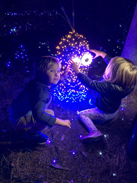 That evening we went to the Lewis Ginter Botanical Gardens to check out their lights. This was our trip sort of in lieu of doing Christmas Town this year. The girls' favorite part was this unicorn.